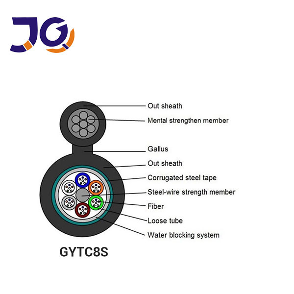 Typ ist ein selbsttragendes Luftkabel für den Außenbereich. Es unterstützt 1 bis 144 Fasern mit einer losen Aderstruktur. Das Kabel besteht aus einem Tragseil, einem PE-Außenmantel, losen Adern, die mit Faser und Gel gefüllt sind, und einem gewellten Stahlbandpanzer zum Schutz vor Quetschungen und Stößen. Ein zentrales Stahldraht-Zugentlastungselement verbessert die Zugfestigkeit, umgeben von wasserblockierenden Materialien. Ideal für Luftinstallationen, ist GYTC8S sowohl für Langstreckenübertragungen als auch für LAN-Kommunikationsnetzwerke geeignet.