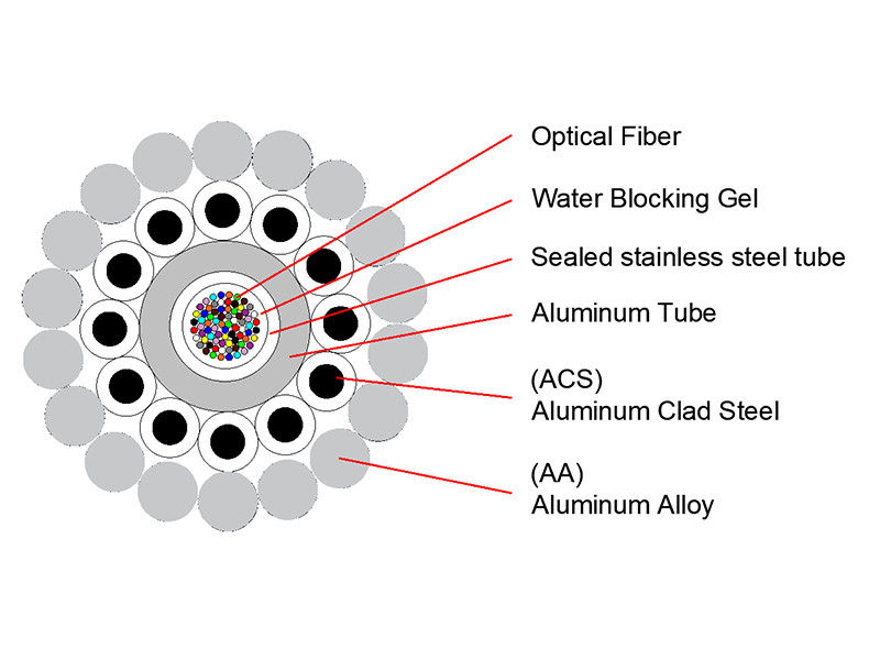 OPGW Typische Designs für zentrale AL-ummantelte Edelstahlrohr